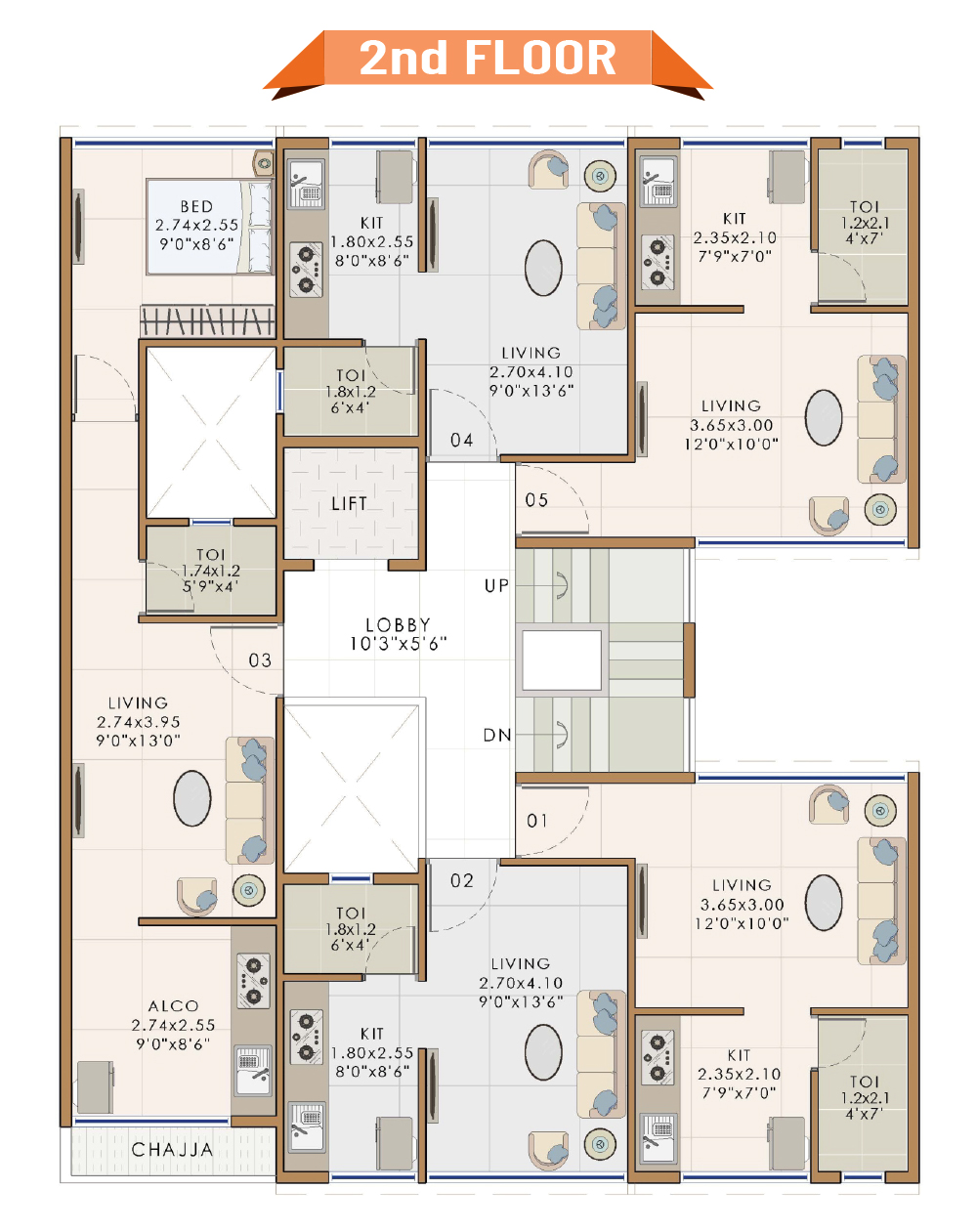 Concealed brand copper wiring & fittings. Provision of cable tv in living & bedrooms. AC point provision in bedrooms.